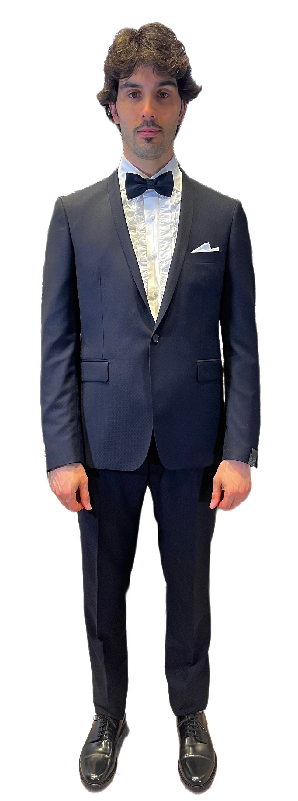 LUIGI BIANCHI - Abito da cerimonia smoking doppiopetto blu con rever a lancia
